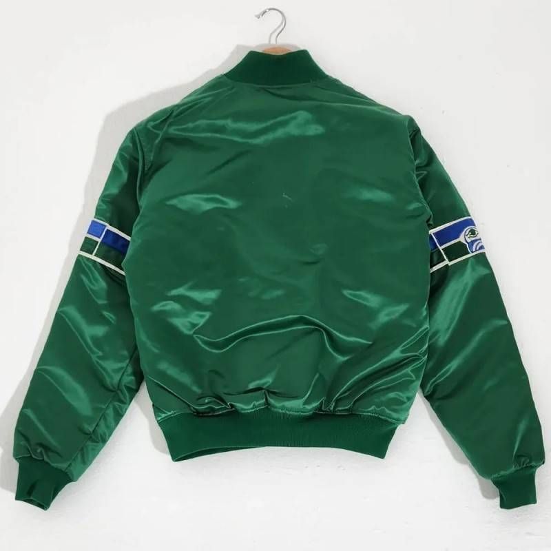 Capture the electrifying spirit of the 1990s with the Seattle Seahawks 1990s Green Satin Jacket. This authentic throwback piece immerses you in the decade's iconic athletic fashion, defined by its striking green satin fabric and period-perfect team graphics. It's a direct link to an era of memorable plays and bold style, offering more than just fan apparel—it's a wearable piece of team history. Designed for collectors and long-time 12s, this jacket is a celebration of nostalgia, allowing you to showcase your Seahawks pride with a authentic dose of 90s flair.