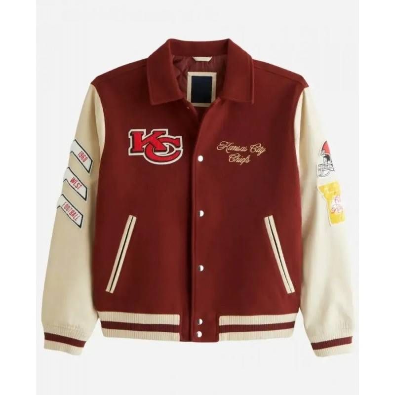 Celebrate Chiefs pride with the Abercrombie Kansas City Chiefs Wool Varsity Jacket – a timeless piece blending vintage varsity style with official NFL legacy.