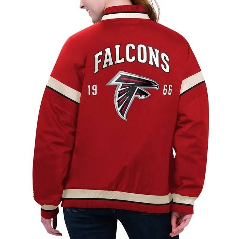 Show your Falcons pride with the Atlanta Falcons Tournament Red Varsity Jacket, featuring bold team colors and a classic varsity design. Perfect for game days or casual wear.