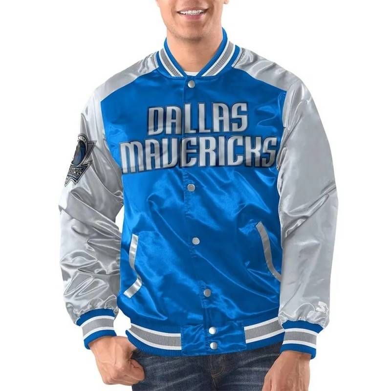 Rep your team in style with the Blue/Silver Dallas Mavericks Renegade Varsity Jacket. Featuring satin fabric with bold team colors and sleek striping, this jacket delivers court-to-street swagger for true MFFLs.