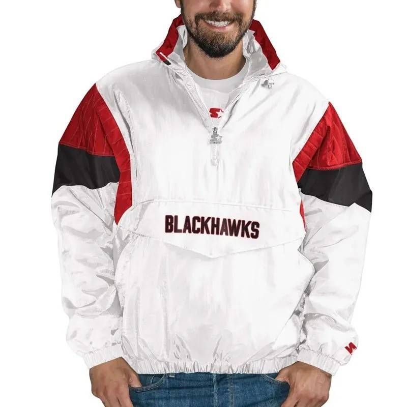 Celebrate your Chicago Blackhawks pride with this white half-zip pullover jacket. Designed for fans who appreciate classic hockey style, this pullover blends heritage and modern comfort.