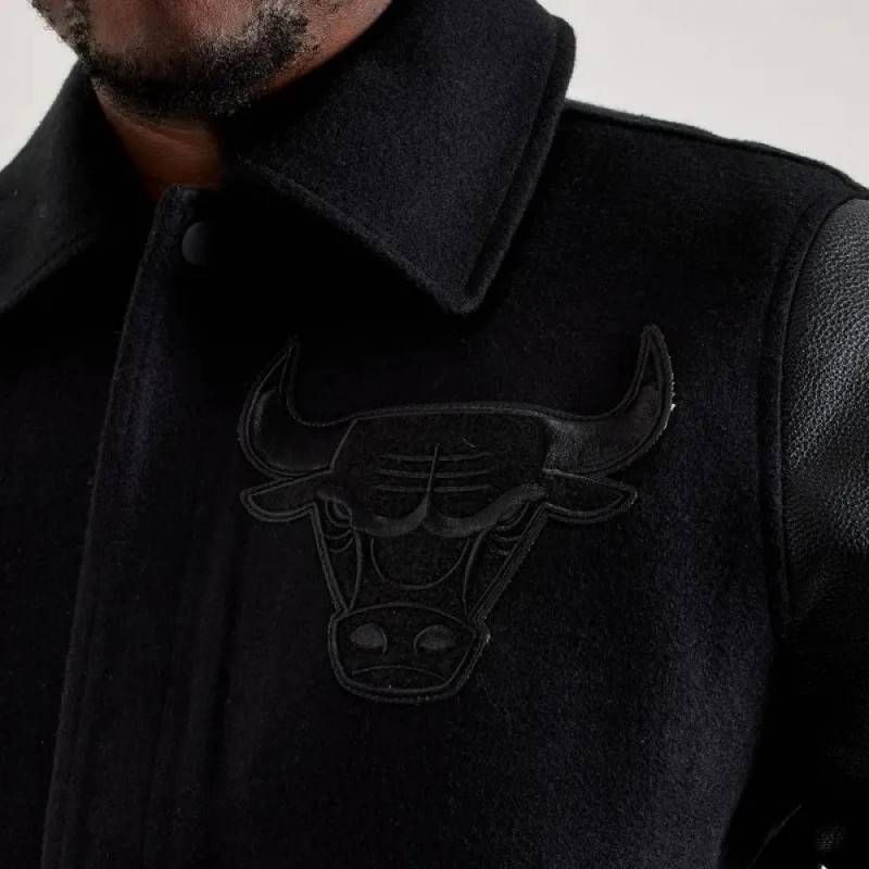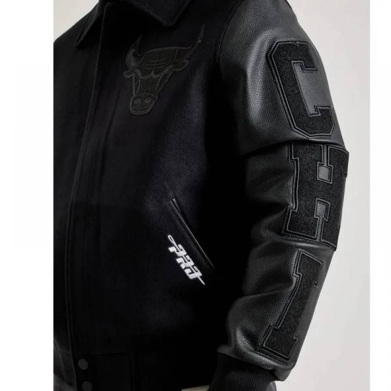 Rep your Bulls pride in classic varsity style with this Black Patches Chicago Bulls Letterman Jacket, featuring premium wool construction and authentic leather sleeves for true NBA fan fashion.
