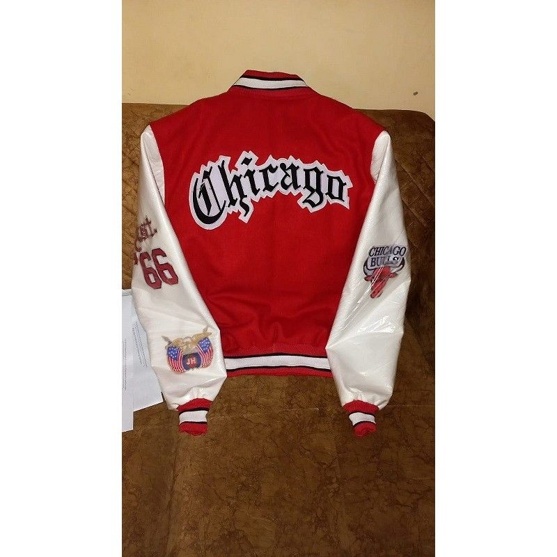 Chicago Bulls Red Wool and White Leather Varsity Letterman Jacket