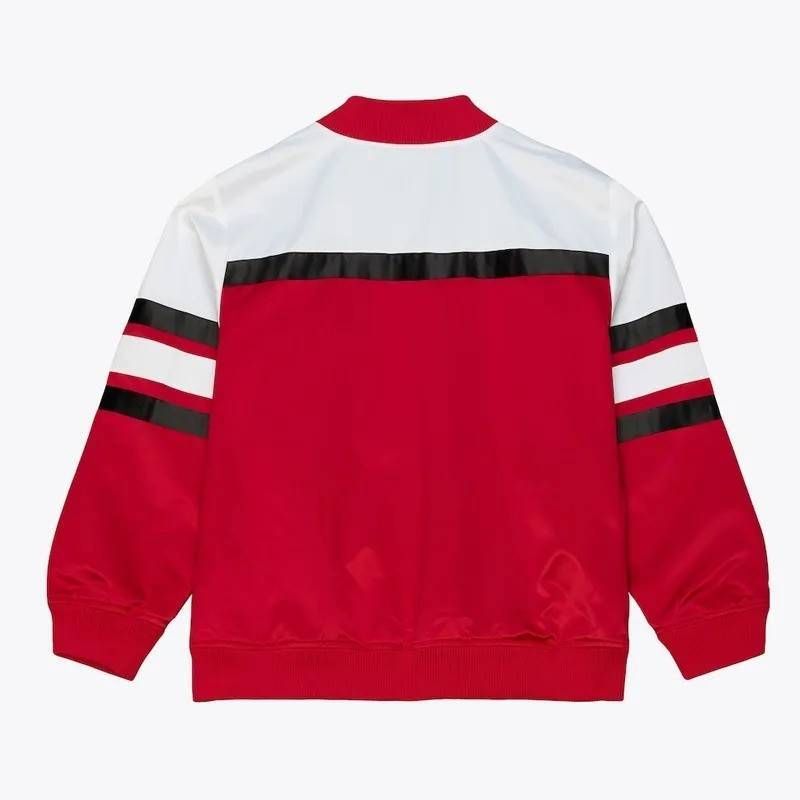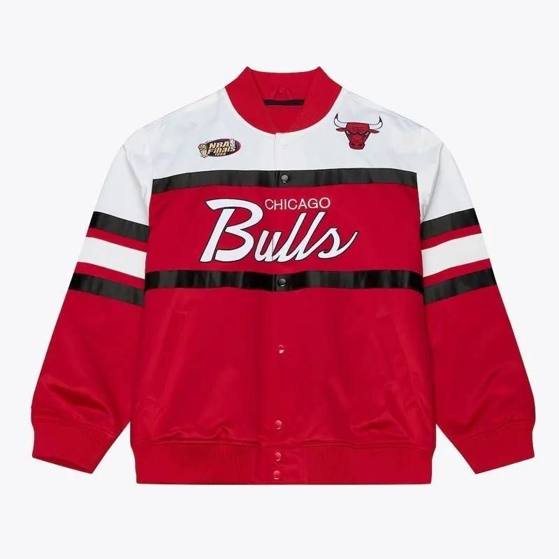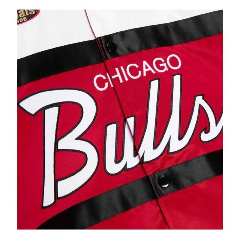 Showcase your Bulls pride with the Chicago Bulls Special Script Red and White Satin Jacket, featuring bold red and white satin design and classic NBA-inspired script detailing.
