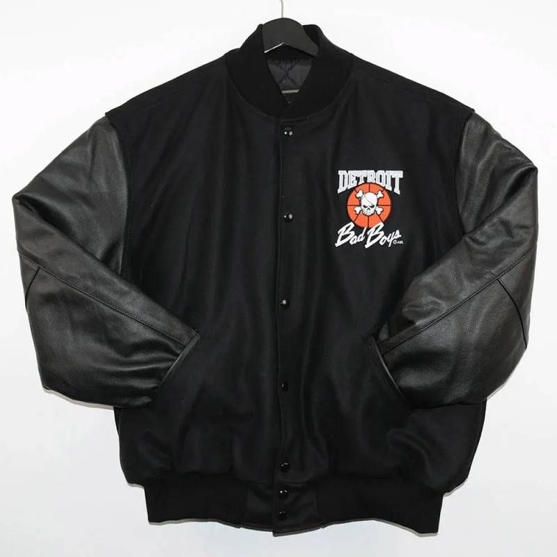 Channel the Pistons' legendary Bad Boys era with this Black Varsity Jacket, a timeless tribute to Detroit’s championship basketball legacy.