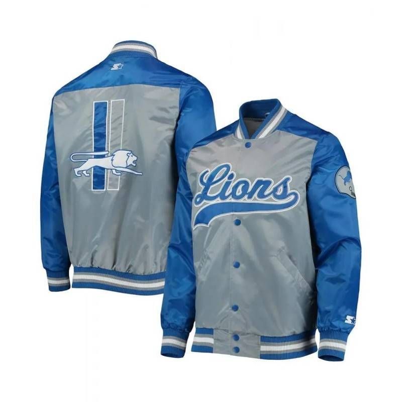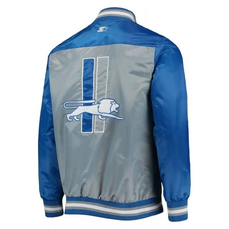 Detroit Lions The Tradition II Grey and Blue Varsity Satin Jacket
