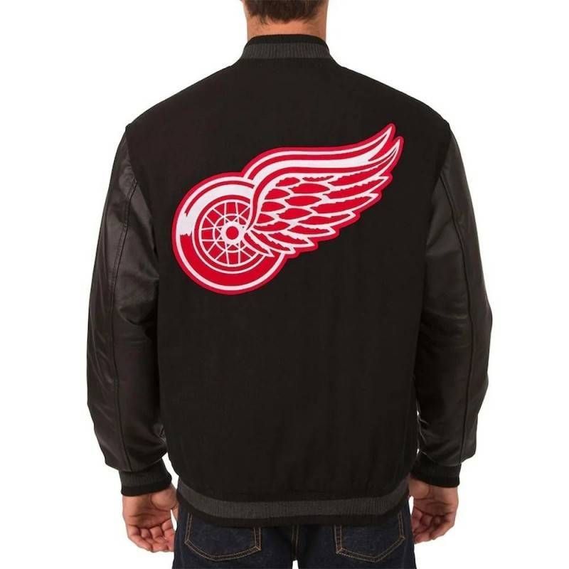 Elevate your fan style with this Detroit Red Wings Two Hit Varsity Wool & Leather Black Jacket, featuring premium materials and iconic team branding. This classic letterman jacket delivers authentic NHL nostalgia with its vintage design and timeless Red Wings spirit.