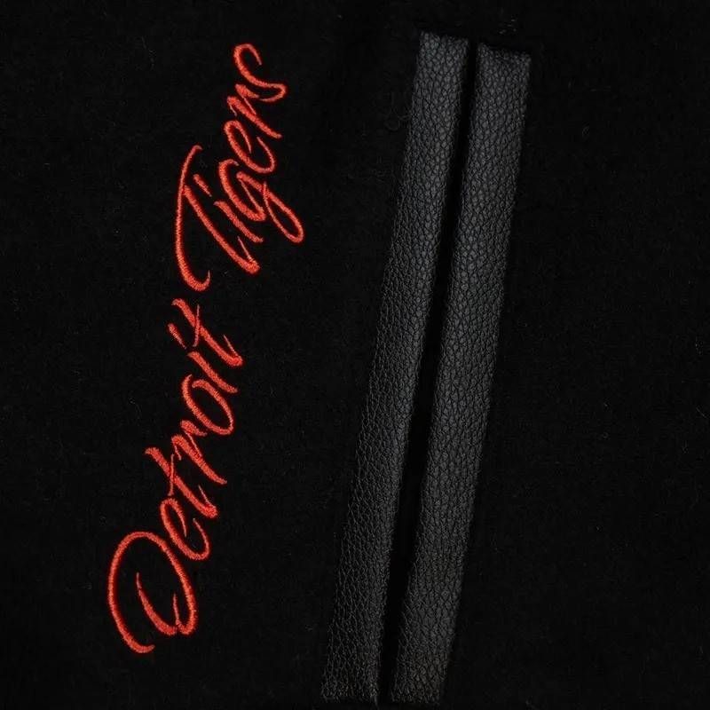 The Detroit Tigers Black Out Vintage Logo Varsity Jacket blends nostalgia with modern style, featuring a bold retro Tigers logo for a timeless baseball look. Made with high-quality materials, this jacket is a perfect tribute to the team’s heritage, ideal for fans who appreciate classic sports fashion. Whether for game days or everyday wear, it’s a standout piece for any Tigers supporter.