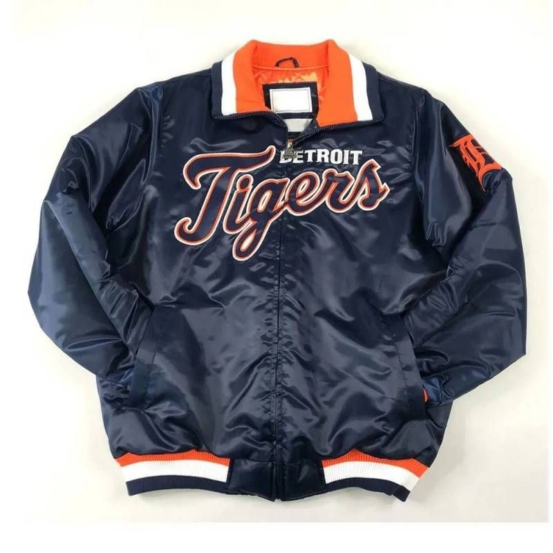 The Detroit Tigers Script Navy Satin Jacket blends vintage baseball charm with sleek satin style. Featuring the iconic Tigers script logo, this retro-inspired jacket delivers timeless team pride with 1970s-80s athletic aesthetic.