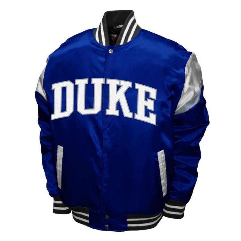 Represent Duke University with timeless athletic style in the Duke Blue Devils Tide Club Satin Jacket. This premium piece captures the classic aesthetic of a satin baseball jacket, featuring clean lines, the iconic Duke Blue Devils logo, and a traditional silhouette perfect for showing school spirit. Designed for students, alumni, and fans, it’s a versatile and polished layer for game days, campus life, or casual wear. This jacket is more than fan apparel; it’s a wearable emblem of pride and tradition for one of college sports’ most storied programs.