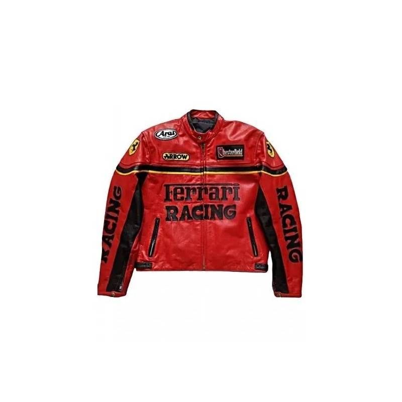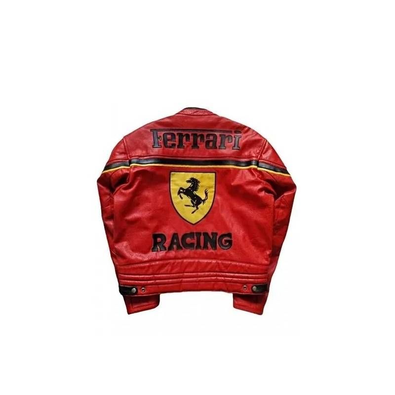 Celebrate Ferrari's racing legacy with this bold red leather jacket, designed to embody the speed, power, and prestige of Formula 1’s most iconic team.