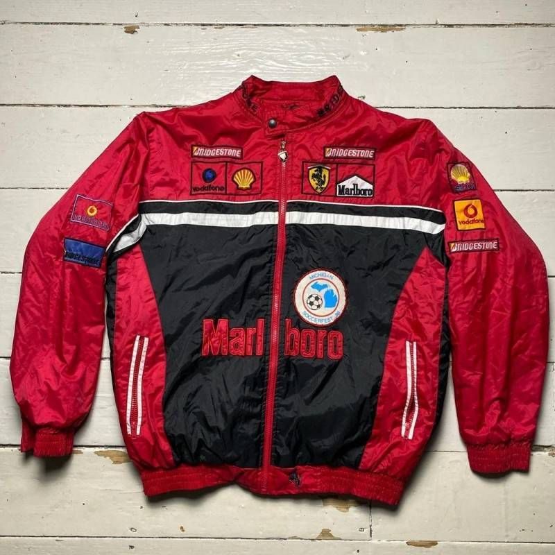 The Ferrari Vintage Bomber Jacket merges classic aviation style with Ferrari's rich racing legacy. Inspired by the brand's most iconic eras, this jacket features a timeless bomber silhouette crafted with premium materials for an authentic retro look. Perfect for Ferrari enthusiasts and vintage fashion lovers, it's more than just outerwear—it's a wearable piece of motorsport history that honors Scuderia Ferrari's enduring influence on both racing and style.