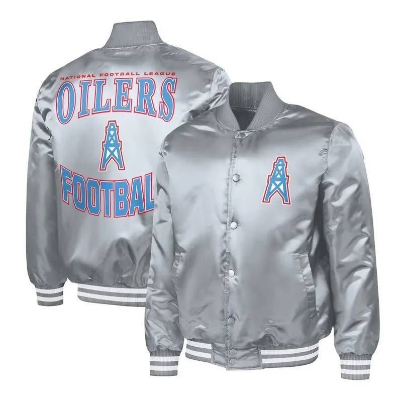 Houston Oilers Adaptive Team Graphic Varsity Satin Jacket
