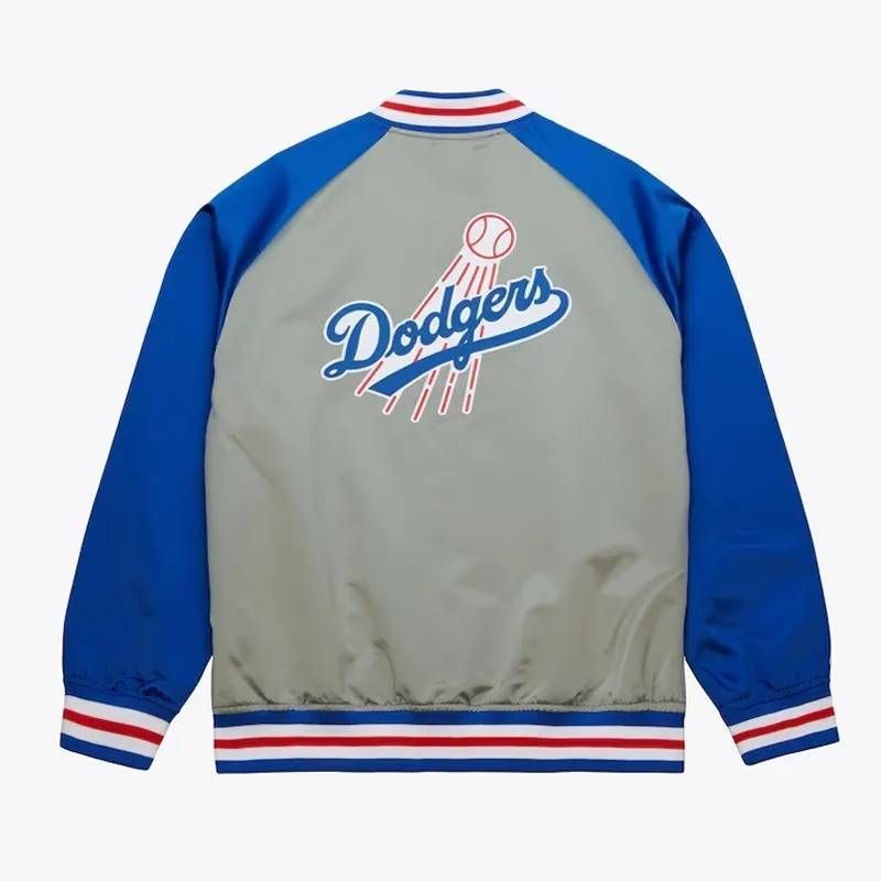 Step into timeless team pride with the LA Dodgers Vintage Logo Double Clutch Lightweight Gray Satin Jacket – a sleek nod to baseball heritage and classic fanwear.