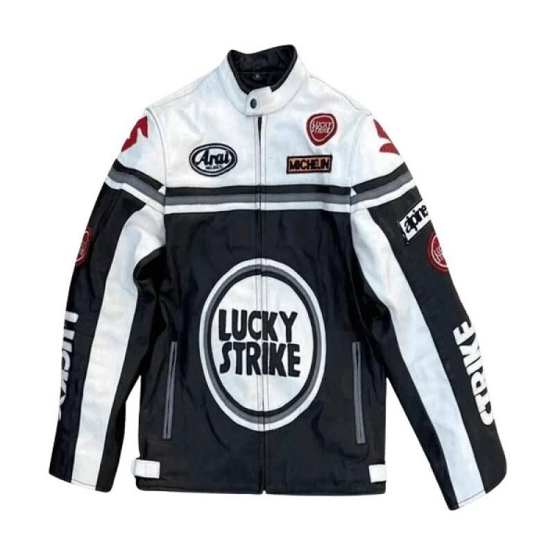 The Lucky Strike Black Leather Jacket channels the rebellious spirit of vintage Americana with its iconic tobacco brand styling. A timeless piece of counterculture fashion history.