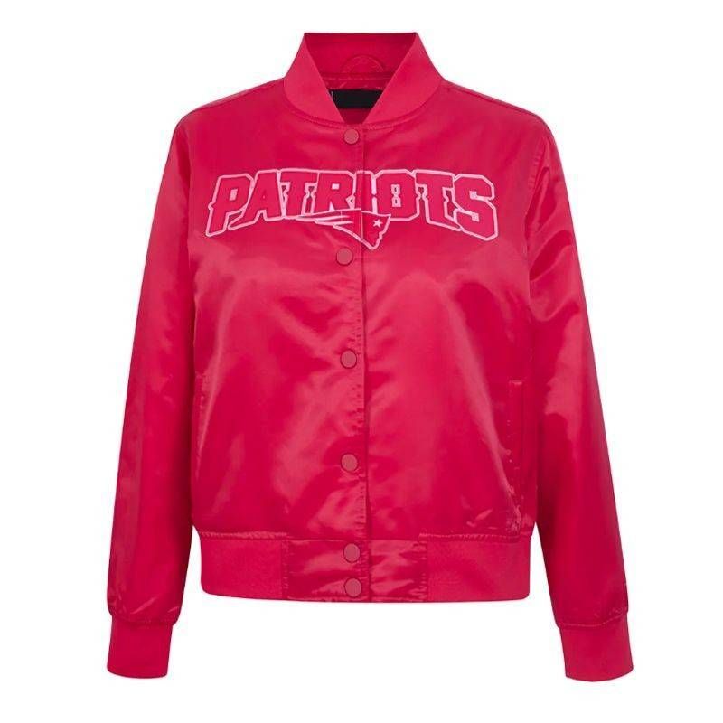 Make a vibrant statement with the New England Patriots Triple Pink Satin Jacket, featuring a striking all-pink design with bold Patriots branding for fearless fan fashion.