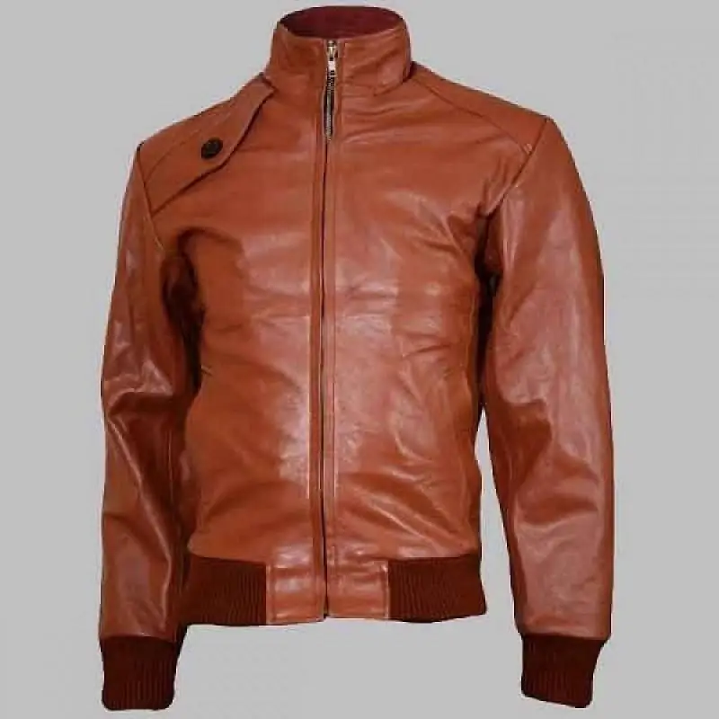 New Men's Tan Leather Bomber Jacket