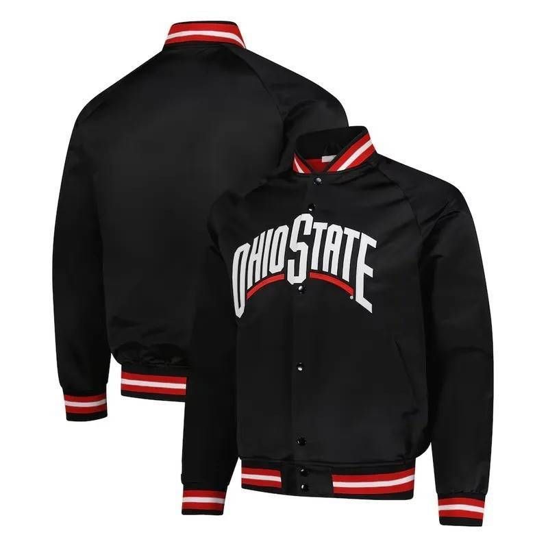 Show off your team spirit in sleek fashion with the Ohio State Buckeyes Lightweight Black Satin Jacket. A perfect blend of athletic heritage and everyday street style.