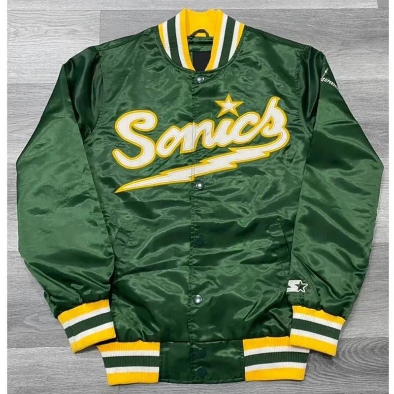 The Seattle SuperSonics Youth Jacket pays tribute to one of the most iconic teams in NBA history. Inspired by the golden era of the Sonics, it captures the bold green identity that defined Seattle basketball culture. Perfect for young fans who want to celebrate classic NBA heritage while showing their love for the legendary SuperSonics legacy.