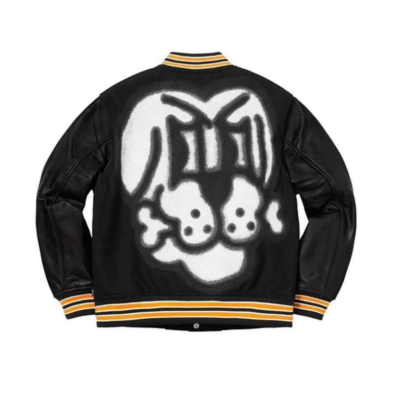 The Supreme Bone Black Letterman Varsity Jacket is a perfect blend of classic collegiate design and modern streetwear appeal. Crafted for both men and women, it offers a bold, stylish look that honors the tradition of varsity jackets while keeping contemporary fashion in mind. Ideal for casual outings, events, or as a statement piece in your wardrobe