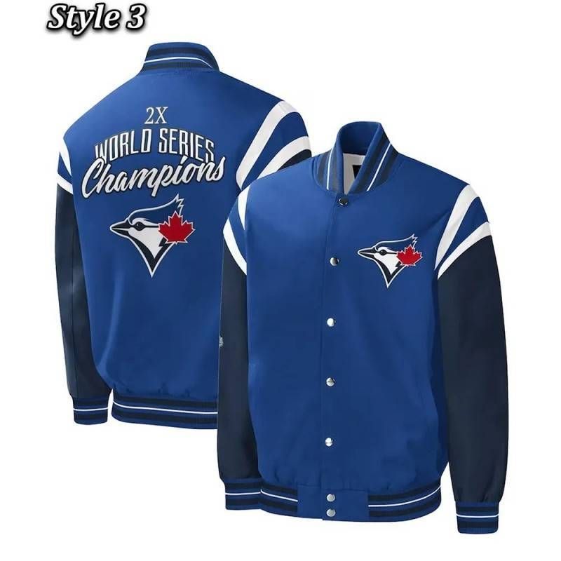 This Toronto Blue Jays varsity jacket includes two outer pockets and two inside pockets, offering both style and function. Strong stitching makes this jacket durable and perfect for any occasion.
