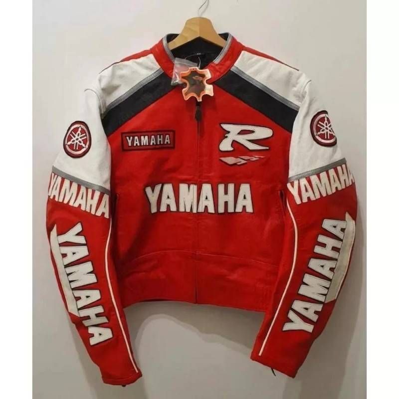 The Yamaha MotoGP Racing Leather Jacket is an authentic replica of Yamaha's championship-winning racing gear, featuring premium leather construction and official team branding.