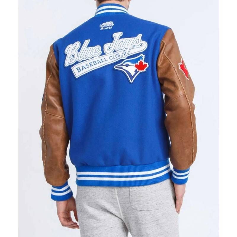Celebrate your baseball passion with this Toronto Blue Jays varsity jacket, featuring classic blue wool and tan leather sleeves. Authentic sports-inspired craftsmanship.
